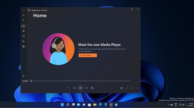 Anteriormente, os desenvolvedores adicionaram um Windows Media Player redesenhado ao Windows 11, que começou a corresponder ao estilo moderno da plataforma de software. Parece que o player é baseado no Groove Music. Em uma das compilações de teste lançadas recentemente do Windows 11, o player recebeu suporte para reproduzir CDs.