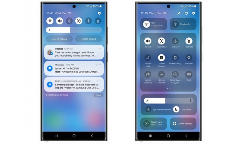 Além disso, a Samsung postou várias capturas de tela mostrando One UI 6, mostrando uma interface de configurações rápidas redesenhada e um novo widget de câmera que permite escolher onde armazenar o conteúdo antes de usar a câmera. A postagem também menciona o recurso de atribuir papéis de parede diferentes a modos diferentes e várias melhorias menos perceptíveis.