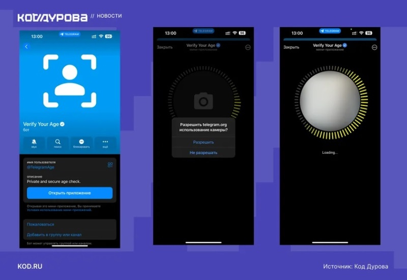 O Telegram possui um bot oficial para verificar a idade dos usuários. De acordo com o “Código Durov”, ele é baseado em um miniaplicativo, e um dos recursos dessa solução é a função de escaneamento facial.