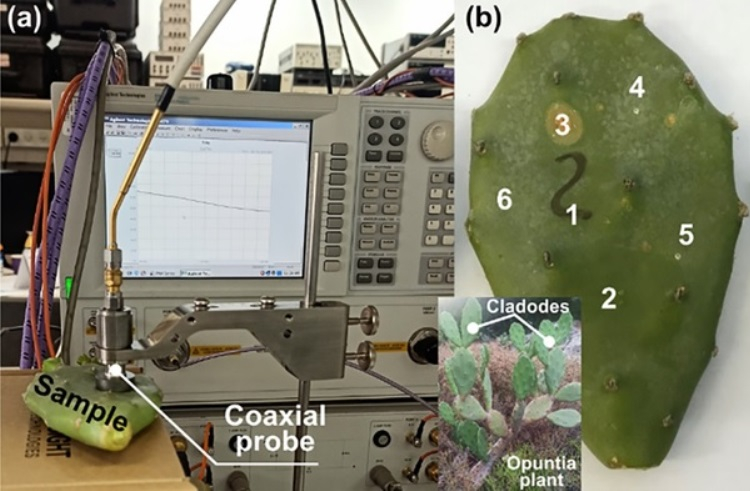 A alta proporção de água nas plantas contribui para a ocorrência de múltiplas ressonâncias eletromagnéticas. Os cientistas usaram o cacto nopal, cujos caules são 75-85% de água, graças ao qual foi possível usá-lo como uma antena omnidirecional de banda larga natural operando nas bandas Wi-Fi de 900 MHz a 7,7 GHz.