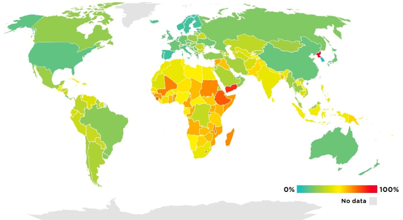 Porcentagem de áreas não cobertas por internet móvel / Fonte da imagem: GSMA