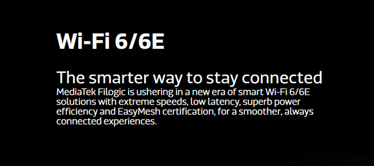 O Filogic 830 é um System-on-a-Chip (SoC) compatível com os padrões Wi-Fi 6 / 6E. Em outras palavras, ele funciona em três faixas de frequência – 2,4, 5 e 6 GHz. A velocidade de transferência de dados declarada atinge 6 Gbps.