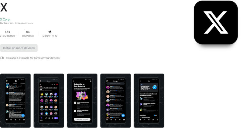 Enquanto isso, o rebranding do Twitter para X está em pleno andamento. Na loja Google Play, para alguns usuários, o aplicativo já mudou, tendo recebido um novo ícone e nome. Provavelmente, em breve o cliente no Apple iOS sofrerá o mesmo destino.