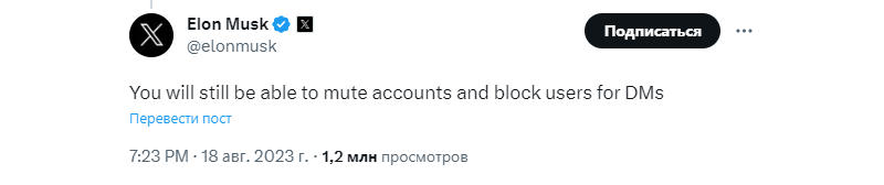 Vale ressaltar que a comunidade de especialistas X interveio no raciocínio de Musk e indicou que sua iniciativa poderia ser uma violação das regras nas lojas de aplicativos. Algum tempo depois, o empresário anunciou que, além da função de bloquear mensagens privadas, a plataforma ofereceria a possibilidade de “silenciar” usuários questionáveis – eles manterão o acesso aos perfis e outros dados de quem os “silenciou”, mas essas mensagens não serão mais vistas.
