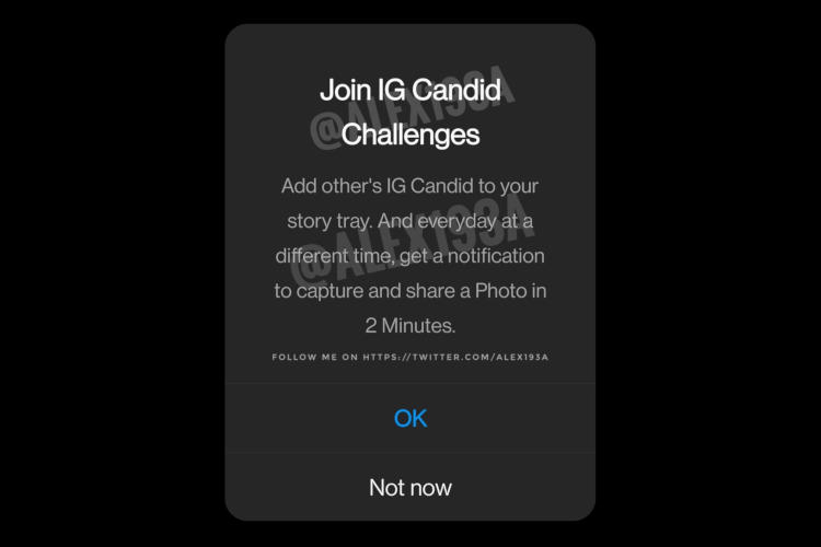 Instagram* предложила своим пользователям присоединиться к проекту IG Candid Challenges: «каждый день в разное время получать уведомления [о том, что пора] сделать и опубликовать снимок за 2 минуты». Об этом сообщил исследователь работы приложений Алессандро Палуцци (Alessandro Paluzzi), он разметил в «Твиттере » скриншот соответствующего уведомления Instagram*.