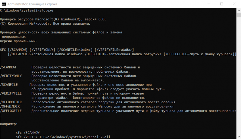 Sfc. Ferramenta System File Checker para verificar a integridade dos módulos do sistema, bibliotecas e componentes-chave do Windows, bem como sua recuperação em caso de detecção de arquivos problemáticos.