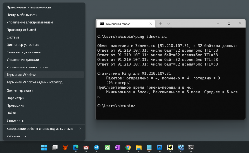Para acessar a linha de comando do Windows, basta clicar no botão “Iniciar” com o botão direito do mouse e selecionar o item de menu apropriado ou usar a combinação de teclas “Win + R”