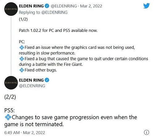 O patch é destinado ao PC e PlayStation 5, onde já está disponível para download. No console da Sony, o patch resolve um problema de salvamento que pode fazer com que o progresso seja perdido.