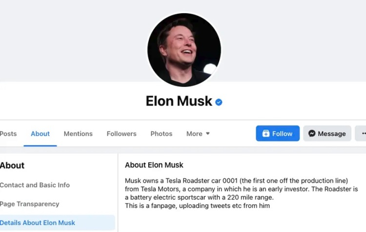 Ficou sabendo que a página não oficial do Facebook do chefe da Tesla e da SpaceX Elon Musk foi verificada por engano, ou seja, “Peguei um carrapato.” A fonte observa que a partir do momento em que a história se tornou conhecida do público em geral, a conta de fã de Elon Musk no Facebook ficou indisponível.