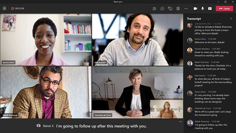 O recurso de legenda ao vivo ajuda os participantes a acompanhar a conversa em tempo real, enquanto os recursos de transcrição ajudam os participantes a recuperar mais tarde as voltas e reviravoltas da discussão ou recuperar o atraso caso eles estivessem ausentes. As legendas em tempo real podem ser especialmente úteis para participantes surdos ou com deficiência auditiva, ou que não sejam falantes nativos do idioma usado na reunião.