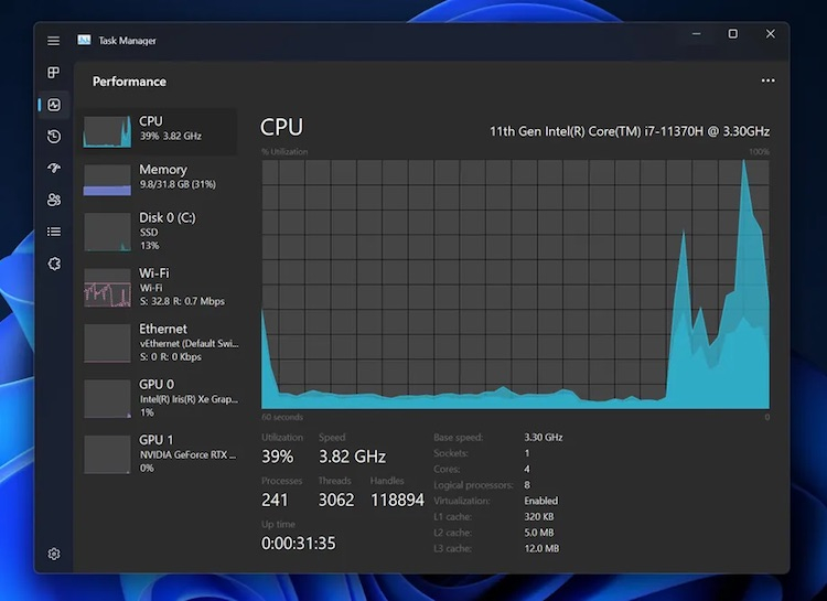 A última, mas não menos importante, inovação foi o design atualizado do Gerenciador de Tarefas. Inclui uma nova barra de comandos e tema escuro, além de um modo que permite limitar o uso de recursos do sistema por aplicativos.