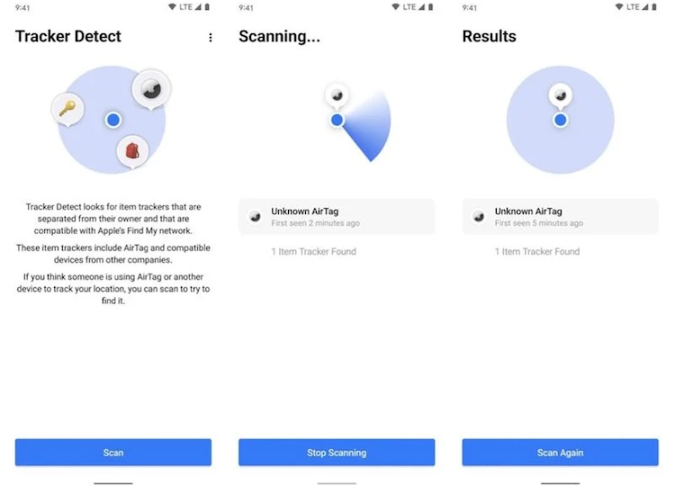 A Apple lançou hoje um novo aplicativo Android chamado Tracker Detect, que já está disponível na Google Play Store. Ele permite que os usuários do Android detectem se os rastreadores AirTag estão próximos a eles e localizem sua localização exata.
