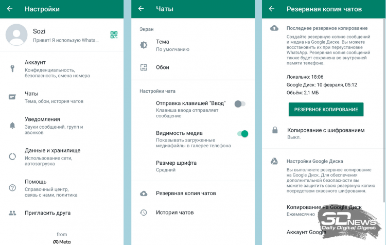 Aqui, no item “Copiar para o Google Drive”, você pode configurar backups automáticos escolhendo com que frequência salvar as cópias. Se necessário, o aplicativo solicitará que você selecione uma conta do Google ou adicione uma.