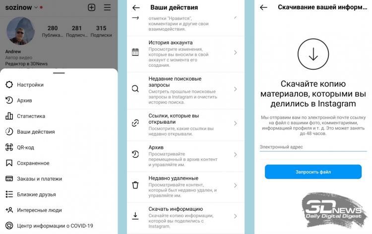 Você também pode “bombear” todos os dados do seu perfil do Instagram por meio de serviços de terceiros, por exemplo, do Yandex.