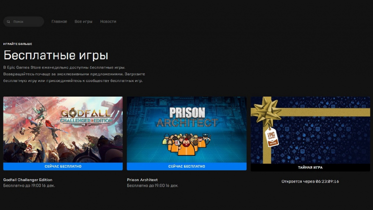 Para se tornar o proprietário de cópias gratuitas de Godfall: Challenger Edition e Prison Architect, você precisa ir às páginas dos jogos e clicar no botão “Obter”. Os projetos serão automaticamente anexados à conta do usuário.