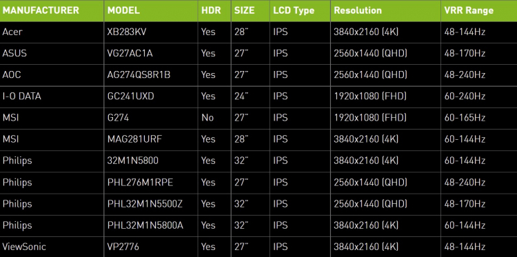 Para onze novos monitores, a NVIDIA anunciou a compatibilidade com a tecnologia G-Sync. Veja a lista de modelos abaixo: