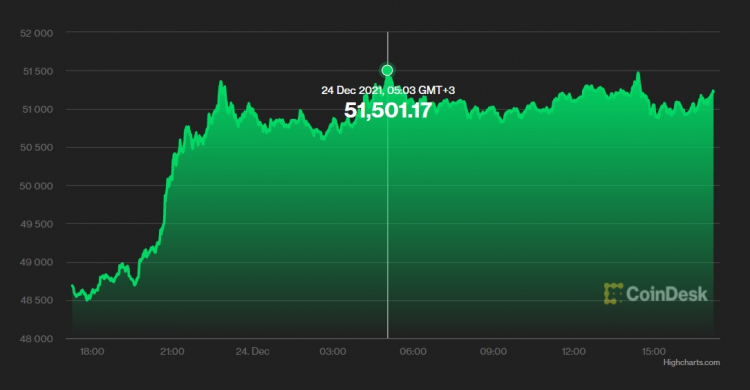 O valor do Bitcoin disparou e ultrapassou a marca de US $ 51 mil antes do feriado que se aproxima. Isso é evidenciado pelos dados da bolsa Coindesk. Durante o dia, a taxa de criptomoeda cresceu quase US $ 3 mil.