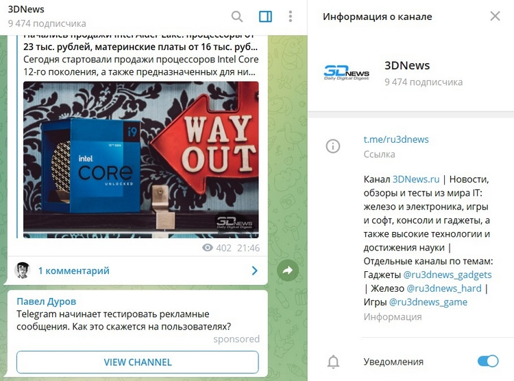 Até agora, a publicidade no Telegram está funcionando em modo de teste. Nada se sabe sobre o momento do lançamento completo.