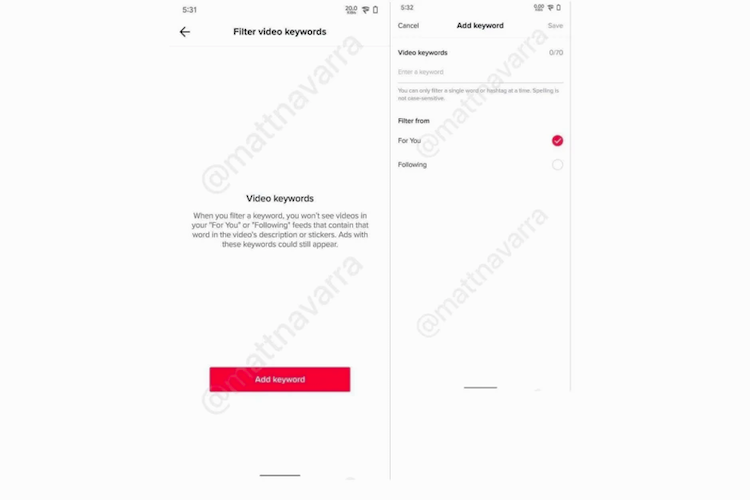 Outro recurso em que o TikTok está trabalhando é filtrar conteúdo com base em palavras-chave e hashtags. Os usuários poderão adicionar filtros na forma de palavras, adesivos e hashtags, e o conteúdo que os contenha não aparecerá em sua página Para você ou em assinaturas. No entanto, os anúncios que contêm essas palavras-chave ainda serão exibidos.