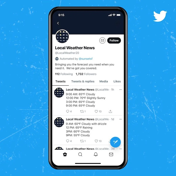 Em setembro, o Twitter lançou um experimento para adicionar rótulos a contas de bots que devem tornar mais fácil para os usuários entenderem que uma página não é de uma pessoa real. O experimento parece ter sido bem-sucedido, pois o Twitter disse que permitirá que os desenvolvedores adicionem atalhos para contas automatizadas a partir de quarta-feira.