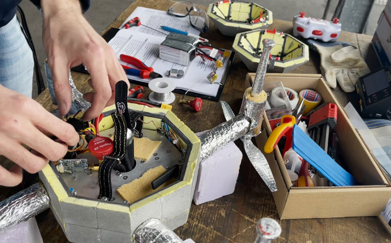 Para que um drone seja resistente a altas temperaturas, é necessário proteger tanto seu corpo quanto as estruturas de suporte, bem como a parte eletrônica – baterias, controladores, câmeras e sensores. Um escudo térmico pode ajudar nisso, mas deve ser muito, muito leve. Os cientistas desenvolveram uma tela na forma de uma matriz de poliimida com bolsas de ar. A força da tela dá fibra de vidro. Para proteger a matriz do fogo, o corpo do drone é coberto com uma camada de alumínio (possivelmente papel alumínio). Dentro do drone, o resfriamento adicional da eletrônica é fornecido pela evaporação do gás pelo sensor de CO2 (sem maiores detalhes).