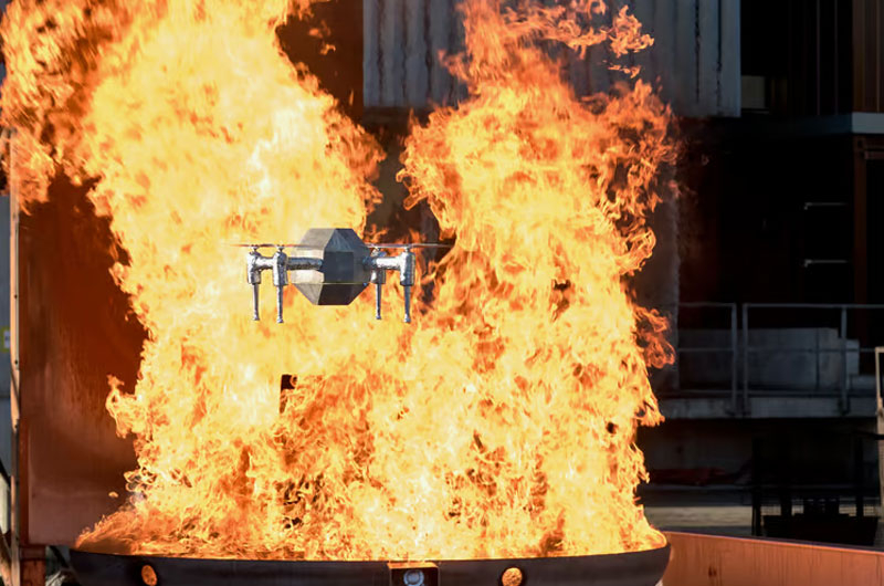 Pesquisadores do Imperial College London e do instituto suíço Empa revelaram um protótipo de quadricóptero FireDrone que pode suportar temperaturas de até 200°C por 10 minutos. O drone foi projetado para ajudar os bombeiros e não apenas. Ele é capaz de fazer reconhecimento em prédios em chamas e procurar pessoas em corredores cheios de fogo e fumaça. Esta é a primeira vez que drones foram desenvolvidos em contato direto com o fogo.