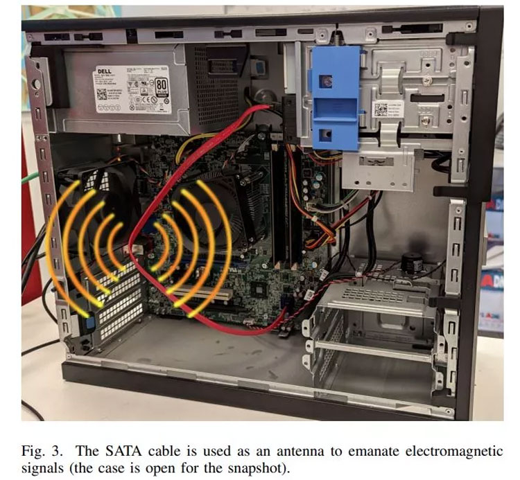 Especialistas israelenses em segurança da informação continuam procurando vulnerabilidades por meio das quais os dados podem vazar dos computadores. Muitas maneiras inusitadas de hackear sistemas já foram descobertas no passado, desde consertar as vibrações de uma ventoinha do gabinete até a indicação de LED e transformar módulos de memória em antenas de rádio. Uma nova brecha para hackear são os cabos SATA comuns, que foram transformados em antenas de rádio para roubo de dados sem fio.