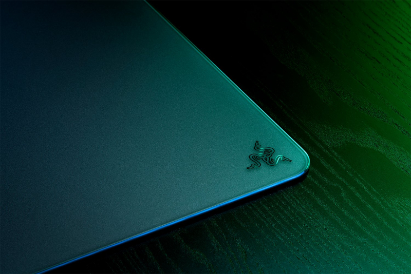 A parte externa do mousepad Razer Atlas é feita de vidro temperado por meio de um processo microgravado que forma um revestimento texturizado na superfície do vidro para evitar que o sensor do mouse “escorregue”. O vidro também é revestido com um revestimento oleofóbico. O fabricante reivindica pela novidade excelente deslizamento com resistência mínima, resistência a sujeira e arranhões, além de operação silenciosa.