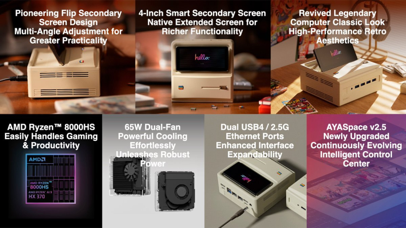 A AyaNeo atualizou seu mini PC compacto AM01 Retro, apresentando o modelo AM01S com um novo processador e uma série de outras melhorias. Em particular, o novo modelo possui uma tela sensível ao toque de 4 polegadas integrada. De um certo ângulo, o mini-PC se assemelha a uma cópia compacta de um computador Macintosh.