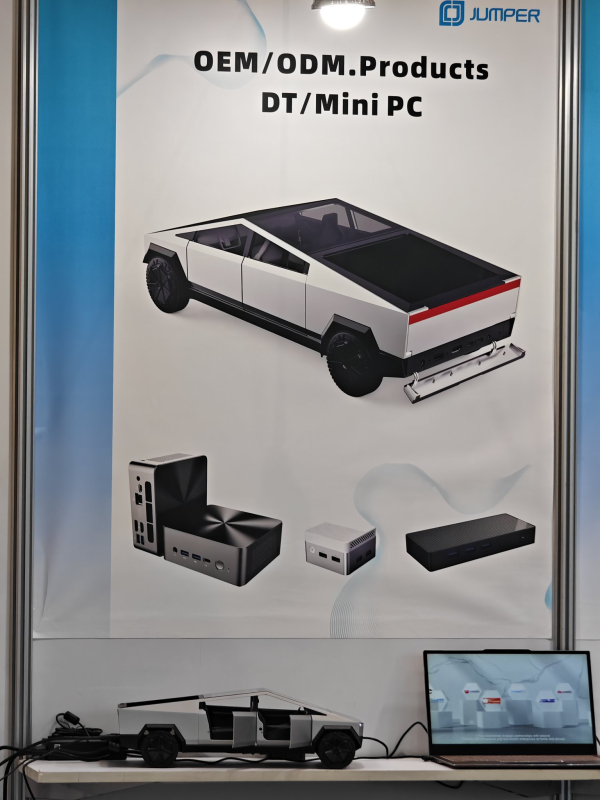 A Jumper Tech mostrou na Computex 2024 um PC desktop compacto, feito em um case na forma de uma picape elétrica Tesla Cybertruck. O sistema parece tão futurista quanto um carro real.