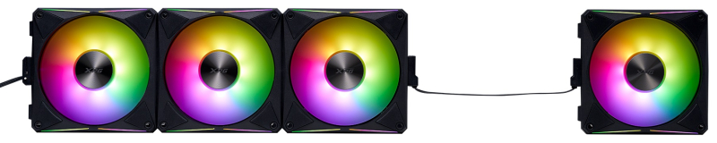 Outra característica importante dos ventiladores é que eles são equipados com fixadores magnéticos, que permitem combiná-los em um circuito, minimizando a quantidade de fios utilizados para conexão a um. É possível combinar até seis ventiladores em cadeia.
