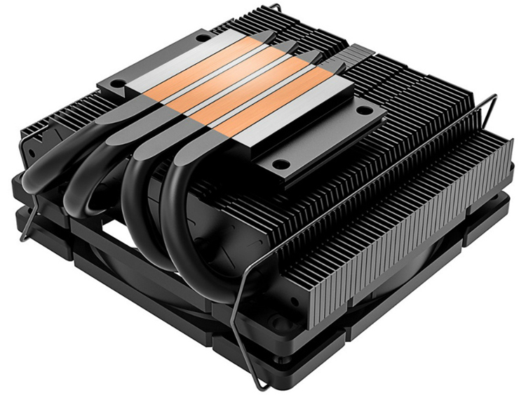 Quatro tubos de calor com diâmetro de 6 mm passam pelo radiador. Eles fazem contato direto com a tampa do processador, o que melhora a dissipação de calor.