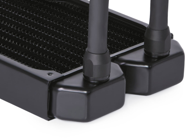 O design da solução inclui um radiador todo em cobre NexXxoS ST30 de 360 ​​mm e uma bomba DC-LT 2 com velocidade de até 2600 rpm. Os tubos de ligação têm 500 mm de comprimento.