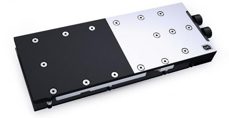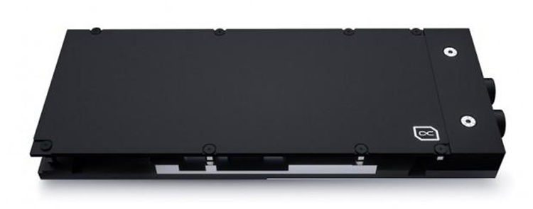 A solução se aplica a dispositivos de cobertura total: o calor é removido não apenas da GPU, mas também dos chips de memória e dos elementos do subsistema de energia. As dimensões são 254,48 × 97,19 × 26,6 mm. A base é feita de cobre niquelado. A placa traseira é feita de alumínio.