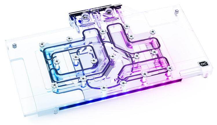 O desenvolvedor melhorou o design do bloco de água. Agora, a espessura dos painéis térmicos é de 1 mm e a espessura do bloco de cobre niquelado é de 5,5 mm contra 7 mm nos produtos anteriores. Além disso, os fluxos de fluido dentro do bloco foram otimizados. Todas essas mudanças contribuem para um aumento na eficiência da dissipação de calor.