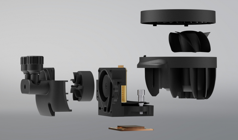 O bloco de água Liquid Freezer III usa uma ventoinha de 60 mm para resfriamento adicional dos elementos do subsistema de energia VRM na placa-mãe. Possui controle PWM e opera na faixa de velocidade de 400 a 2500 rpm. O comprimento dos tubos do radiador ao bloco de água é de 450 mm.