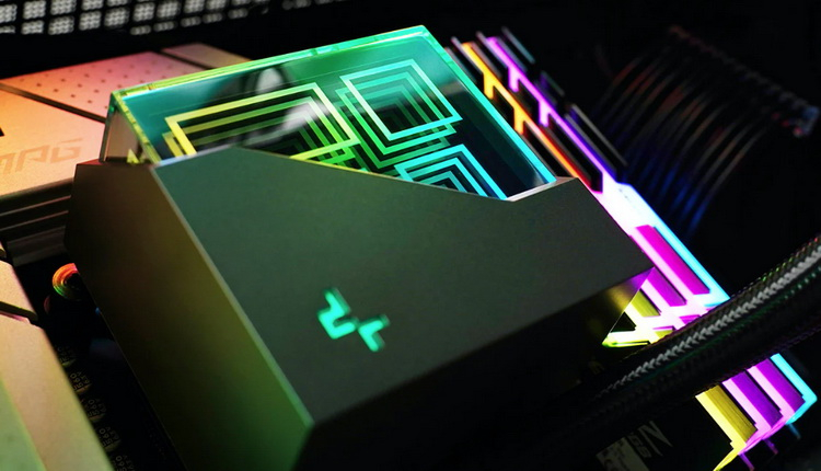 Uma característica distintiva dos waterblocks da série DeepCool LT é uma tampa com retroiluminação RGB, devido à superfície espelhada, criando o efeito de padrões geométricos “infinitos”. A luz de fundo pode ser sincronizada com outros componentes do sistema através do software da placa-mãe.