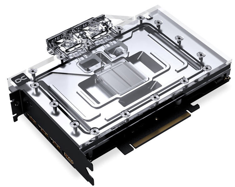 A solução inclui um bloco de água da série Vector2, uma placa traseira de alumínio anodizado preto e uma barra de montagem PCIe de slot único. Utiliza-se a arquitetura Open Split-Flow, que proporciona alta eficiência de refrigeração mesmo com baixas vazões de líquido, o que permite o uso de bombas não muito potentes.