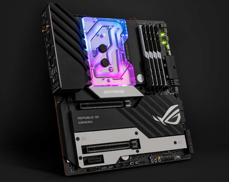 A novidade foi desenvolvida para a placa-mãe ASUS ROG Crosshair VIII Extreme para processadores AMD Ryzen 5000 no soquete AM4. O calor é removido não apenas do próprio chip, mas também da zona VRM, bem como do controlador de rede (LAN).
