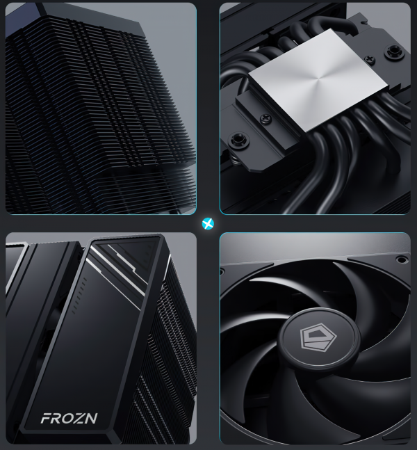 O radiador de alumínio FROZN A620 Black contém 108 aletas e seis tubos de cobre condutores de calor, além de uma base de cobre niquelada. A capacidade do novo produto de dissipar 260 W de energia térmica significa que o cooler pode suportar qualquer processador moderno de consumo da Intel e AMD.