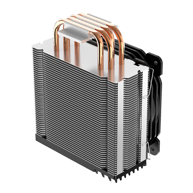 O design inclui um dissipador de calor de alumínio que é perfurado por quatro tubos de calor em forma de U de cobre. Eles fornecem contato direto com a tampa do processador, o que ajuda a aumentar a eficiência do resfriamento. A placa de pressão na parte inferior atua como um pequeno radiador auxiliar.