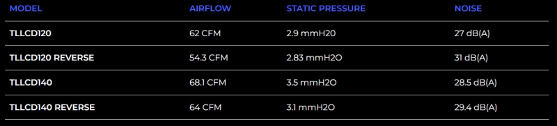 Lian Li UNI FAN TL e UNI FAN TL LCD usam um design de impulsor de nove pás e rolamentos hidrodinâmicos. A distância entre as pás e a estrutura para ventoinhas de 120 mm é de 0,65 mm e para modelos de 140 mm é de 1 mm. Todos os modelos possuem espessura de 28 mm.
