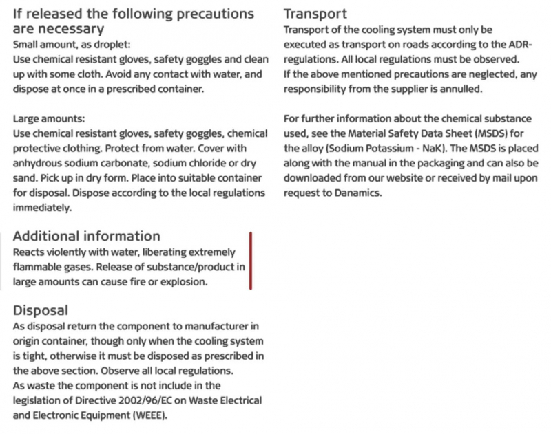 O Danamics LMX é semelhante a um sistema convencional de resfriamento de ar de torre única com vários tubos de calor. Sua principal característica é que existe metal líquido dentro de seus tubos de calor. Neste caso, não estamos falando da habitual liga de gálio, índio e estanho, que der8auer costuma anunciar como uma excelente interface térmica para transferência de calor do processador para o sistema de refrigeração, mas de uma liga de dois metais alcalinos – sódio e potássio. Esta liga é quimicamente agressiva e pode inflamar-se no ar e em contato com a água.