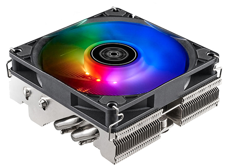 A novidade tem um design “fluxo de cima”. Quatro tubos de calor de cobre com um diâmetro de 6 mm passam pelo radiador de alumínio. A altura total do produto é de apenas 48 mm.