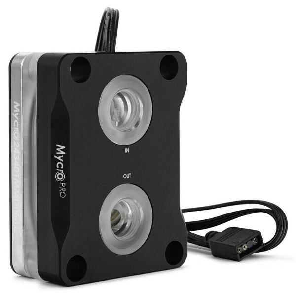 Em comparação com a modificação original do bloco de água, a versão Pro possui um design de base aprimorado que permite aumentar o número de pequenas aletas de resfriamento em 43%. A configuração dos canais internos do bloco de água é otimizada para trabalhar com bombas de desempenho moderado. No total, todas essas melhorias reduzem a temperatura do processador sob carga em 6 graus Celsius em comparação com o modelo básico de bloco de água Intel Mycro Direct-Die. A produção dos waterblocks do novo modelo foi estabelecida na Alemanha; na loja online da empresa, a versão Intel Mycro Direct-Die RGB Pro V1 custa US$ 141,59 incluindo impostos e frete para os EUA.