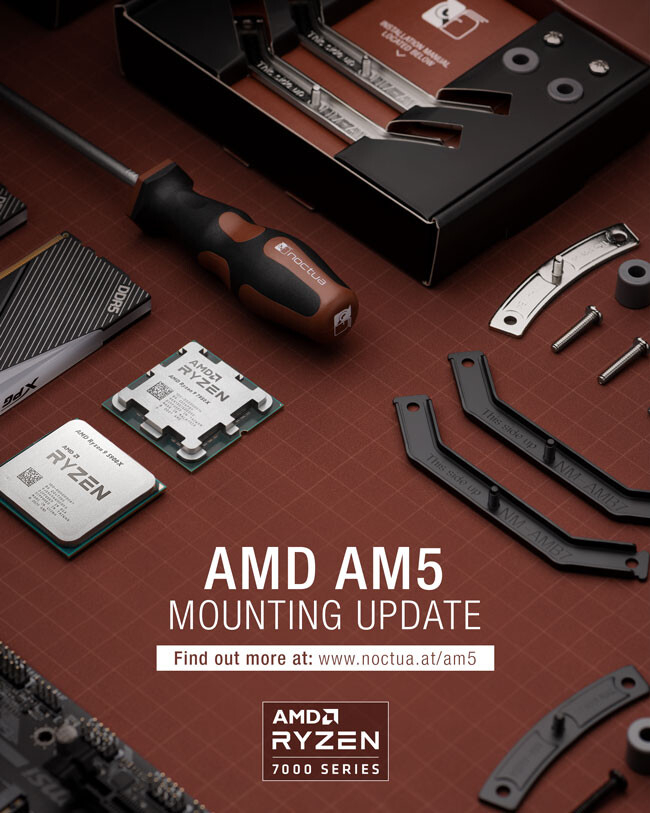 Os coolers mais antigos que ainda não receberam kits de compatibilidade Socket AM4 também podem ser atualizados com kits de montagem Socket AM5. Para facilitar a compreensão dos clientes, os kits de montagem marcados como NM-AM4 ou NM-AM4-UxS serão renomeados como NM-AM5/4-MP83 (para coolers com furos de montagem de 83 mm) e NM-AM5/4-MP78 (para coolers com espaçamento entre furos de 78 mm).