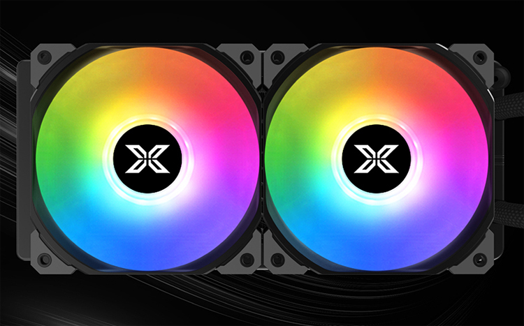 O bloco de água e os ventiladores são equipados com iluminação endereçável. Os efeitos podem ser ajustados e as cores sincronizadas com outros componentes do computador através de placas-mãe com ASUS Aura Sync, Gigabyte RGB Fusion, MSI Mystic Light Sync ou ASRock Polychrome.