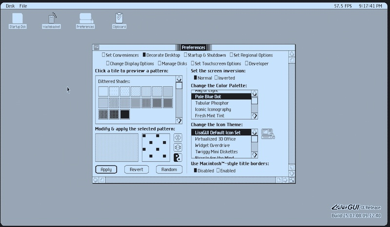 De acordo com o desenvolvedor Andrew Yaros, sua LisaGUI foi escrita do zero em JavaScript e recria completamente o modo de interface do usuário do Lisa Office System. O autor enfatizou que a LisaGUI não é uma “skin” ou um emulador, mas um sistema operacional totalmente funcional com um sistema de arquivos baseado no IndexedDB e seu próprio mecanismo gráfico de 1 bit.