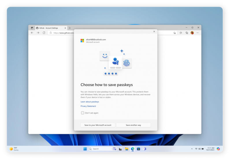 A Microsoft em breve melhorará o suporte para chaves de acesso no Windows 11 – esta tecnologia oferece autorização conveniente sem senha. A interface atualizada do Windows Hello oferecerá a opção de onde salvar as chaves, por exemplo, sincronizadas com uma conta da Microsoft, armazenadas em 1Password, Bitwarden ou outros provedores de serviços de autorização.