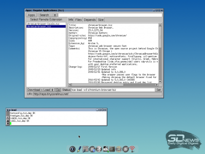 A distribuição Linux mais compacta em nossa análise, cuja imagem de inicialização na configuração mínima leva apenas 16 MB. Para trabalhar totalmente com o Tiny Core Linux, é recomendável usar a compilação CorePlus (163 MB), que inclui vários pacotes adicionais, como um conjunto de gerenciadores de janelas (FLWM, JWM, IceWM, Fluxbox, Hackedbox, Openbox), um instalador com a capacidade de instalar o software necessário, bem como um conjunto de ferramentas para configurar uma conexão de rede, layout de teclado e configurar outros parâmetros do sistema operacional.